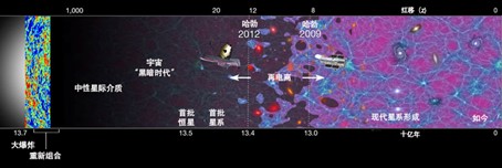“利用地球上一些最强大的望远镜,天文学家窥视可见宇宙的边缘,探测到了大爆炸后出现的第一代恒星发出的光。”