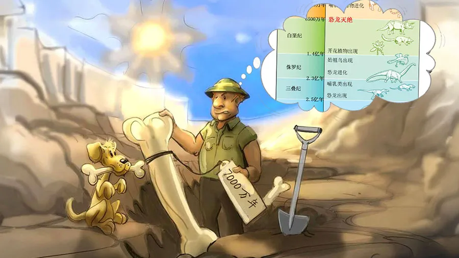 那他们怎么确定恐龙化石的“年龄”呢?——通过查“地质年代表”,也就是根据虚构的故事来定一个古老的年龄。